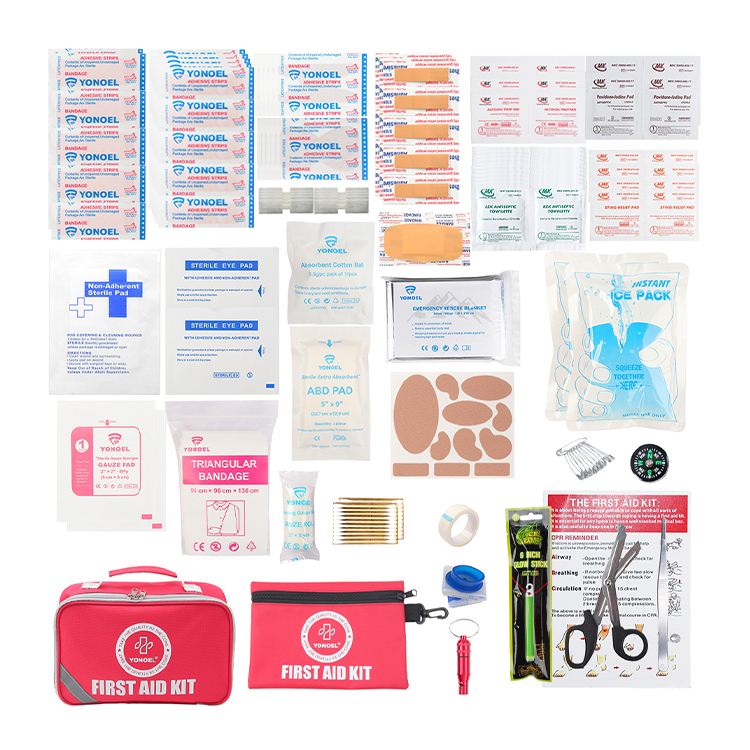 ·Kit de emergencia compatible: Incluye suministros que incluyen vendajes, gasas, cierres de mariposa, paquetes de crema para quemaduras, ungüento antibiótico, toallitas antisépticas BZK, guantes desechables, tijeras y pinzas.